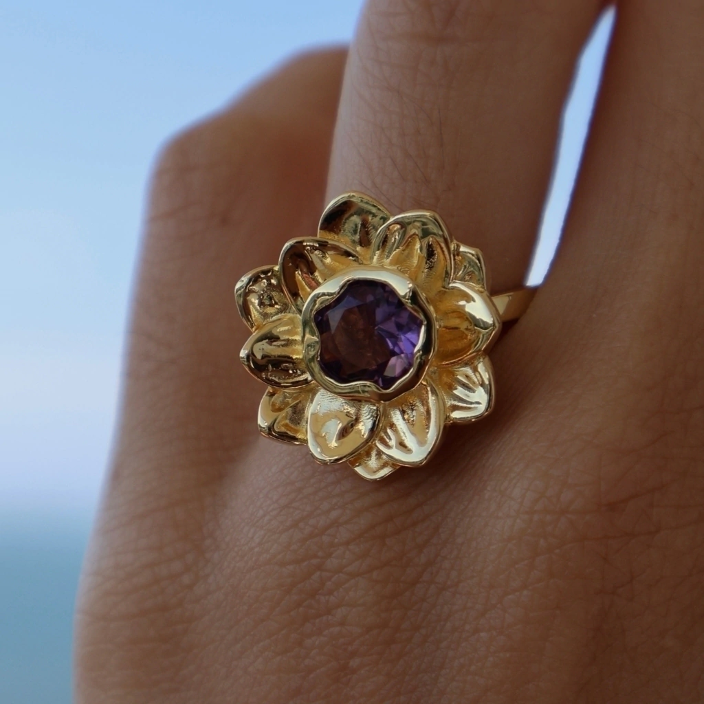 Anel Dama celebra a beleza e o mistério da flor dama-da-noite, uma planta exótica conhecida por sua floração noturna e fragrância marcante. De aro fino e com pedra preciosa redonda em destaque no centro, foi projetado para envolver o dedo com graciosidade, enquanto a flor exibe uma presença majestosa e imponente.