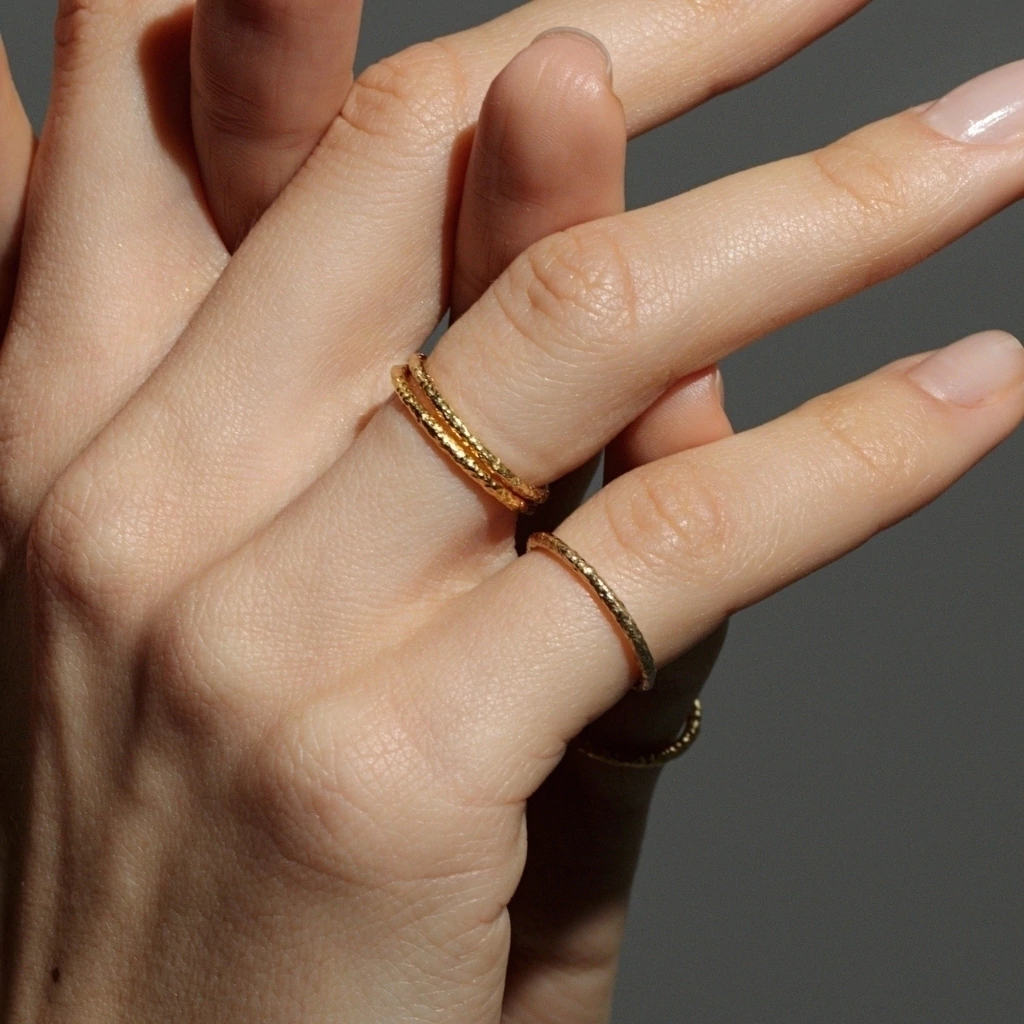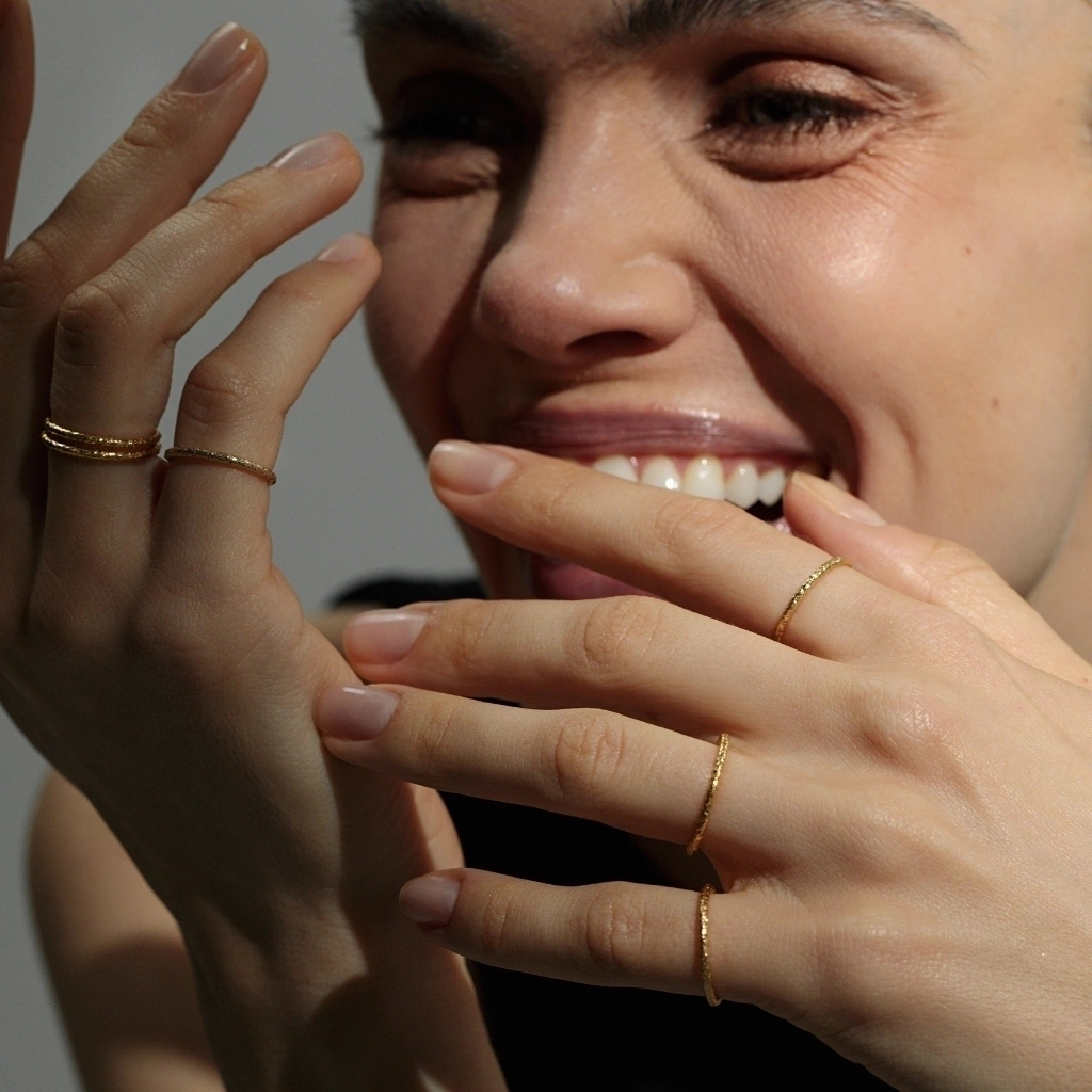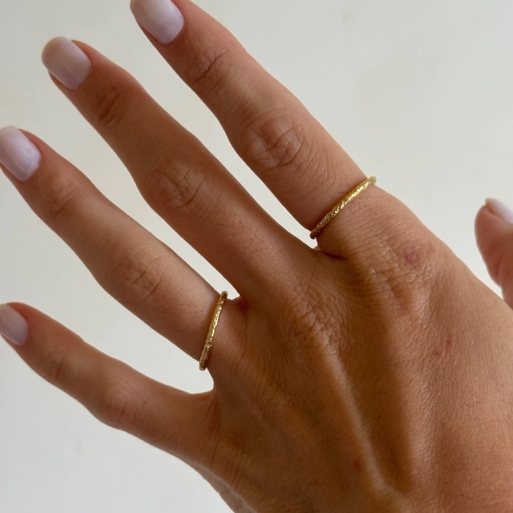 O Anel Respiro é um tributo à pausa intencional que o café simboliza: um momento de cuidado, de conexão e de presença. A prata, com sua superfície texturizada, representa o pó de café – bruto e essencial.