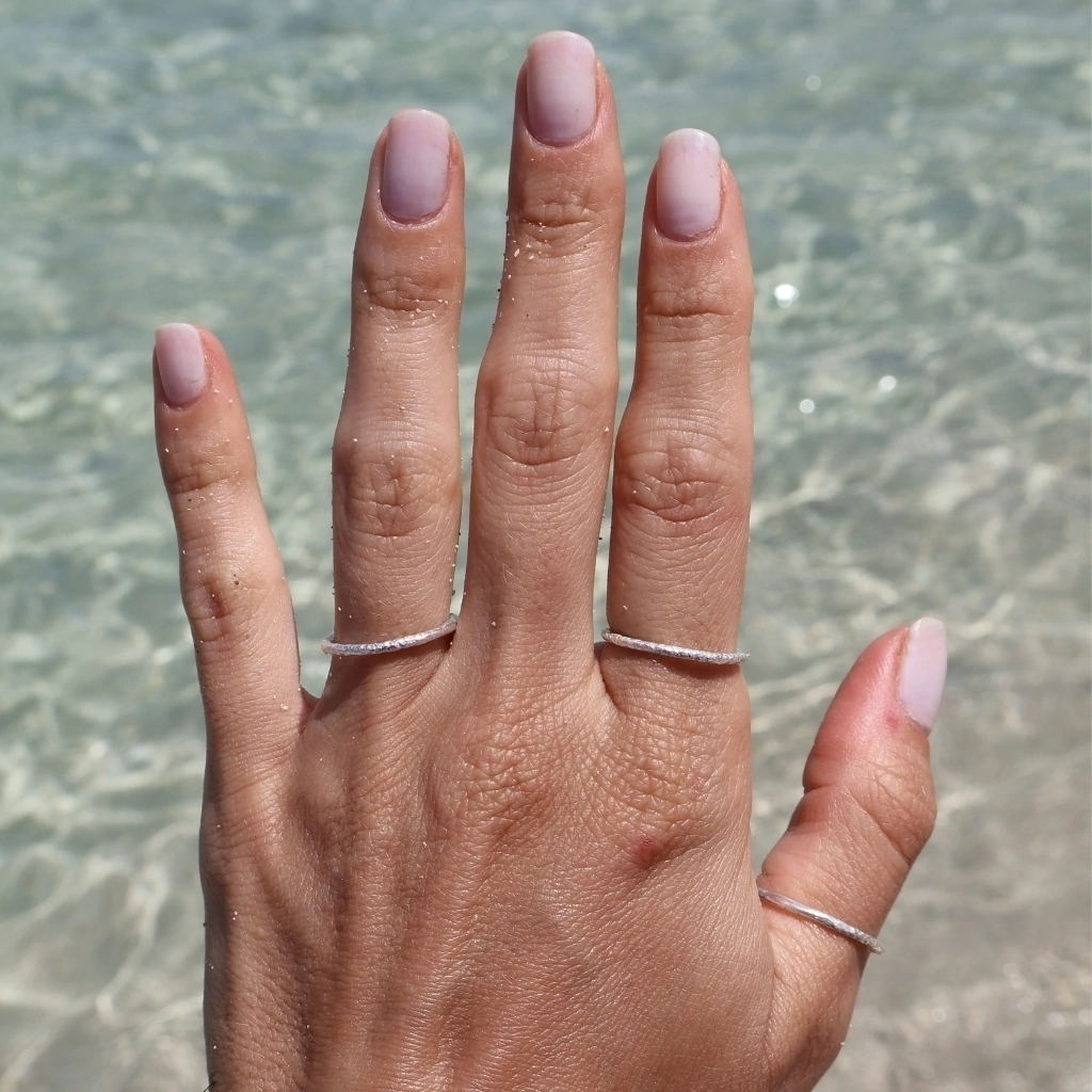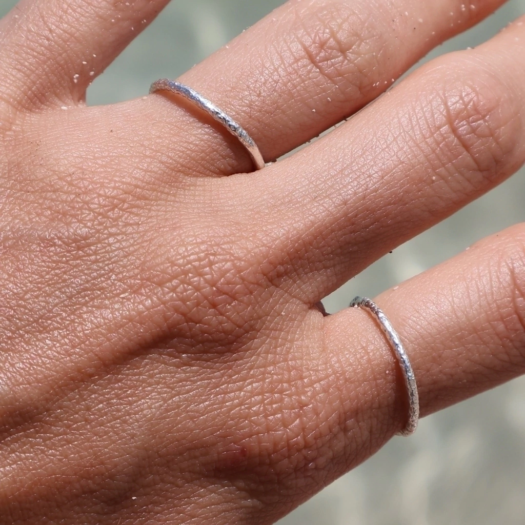 Anel Respiro é um tributo à pausa intencional que o café simboliza: um momento de cuidado, de conexão e de presença. A prata, com sua superfície texturizada, representa o pó de café.