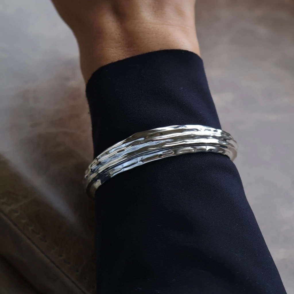 Bracelete Lembrança homenageia a imponência e resistência do cacto mandacaru. Sua estrutura sólida e robusta, evoca a presença imponente dessa planta icônica do sertão brasileiro. As texturas irregulares são meticulosamente trabalhadas para capturar sutilmente os detalhes dos espinhos do mandacaru, criando uma sensação tátil que lembra a aspereza e a força dessa planta resistente.