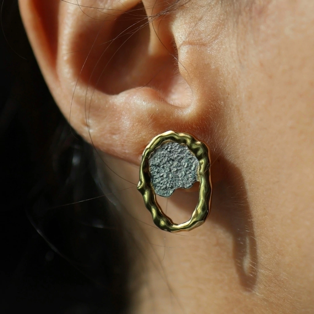 O brinco Essência é uma metáfora visual da nossa jornada: assim como o café é transformado do pó ao líquido, também carregamos em nós a dualidade entre o que somos em essência e o que nos tornamos. É uma celebração da potência que nos dá base e da fluidez que nos permite crescer, adaptarmo-nos e conectar-nos ao mundo.