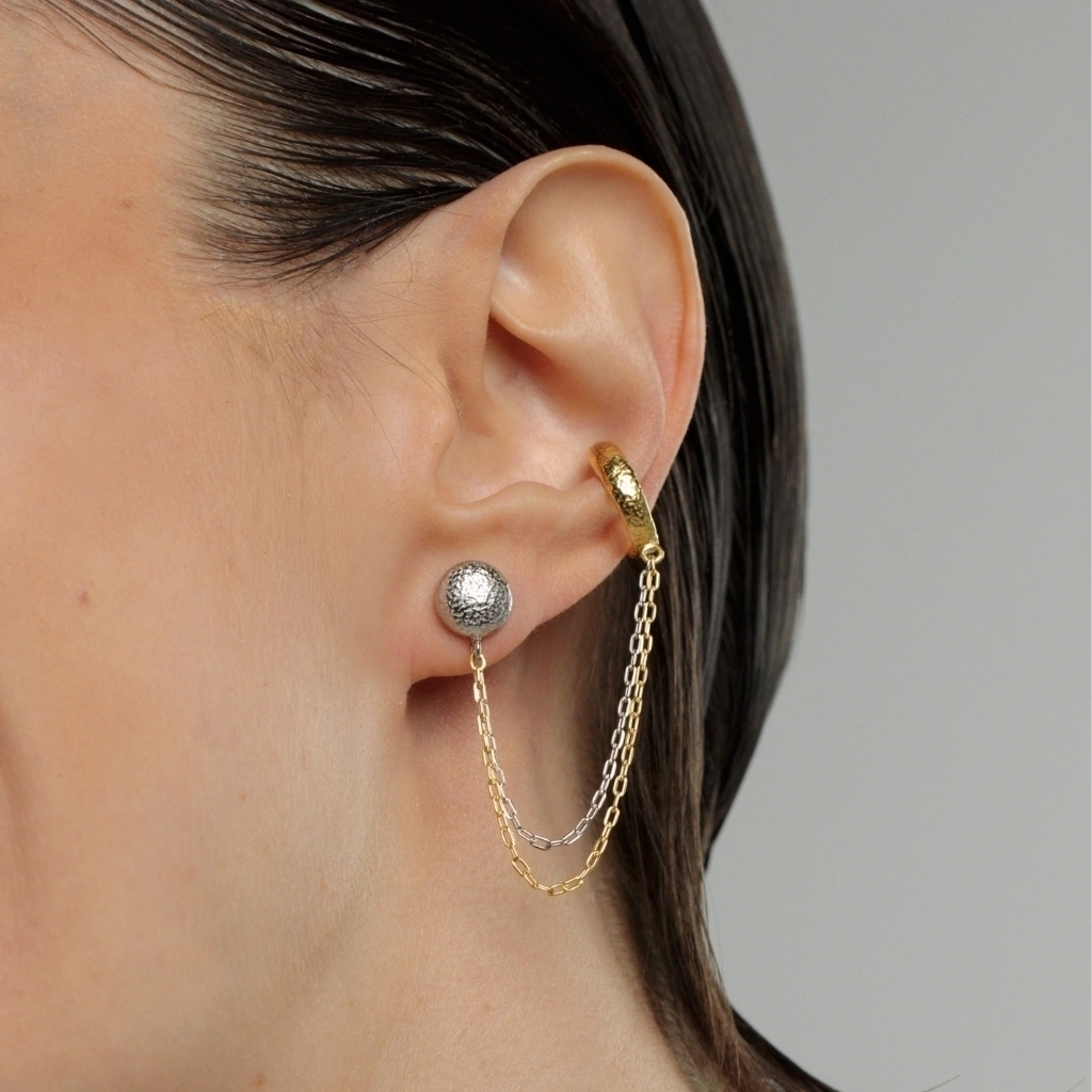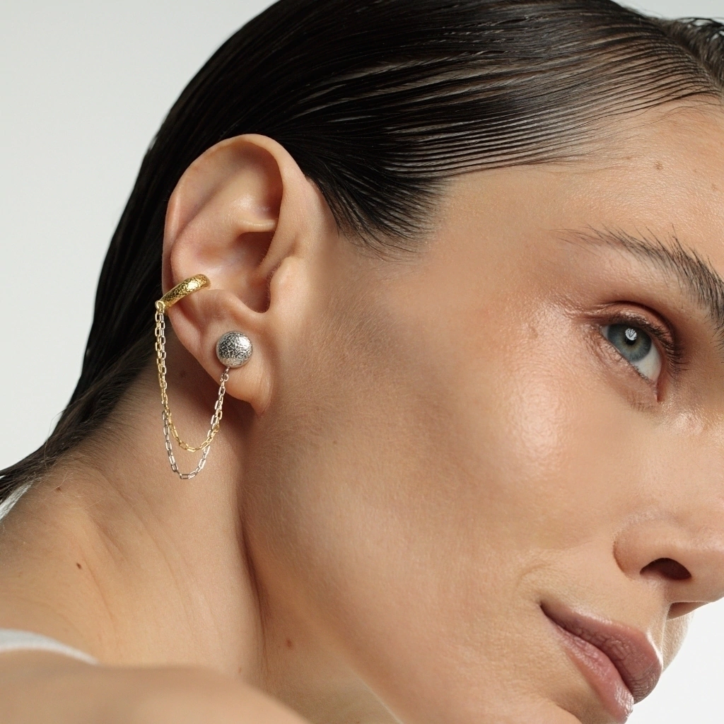 O brinco Instinto celebra o equilíbrio entre força e delicadeza, instinto e conexão, capturando a beleza dos momentos simples e significativos, como o ato de preparar e compartilhar um café. Carrega em seu design a essência da transformação e da intimidade dos pequenos rituais.