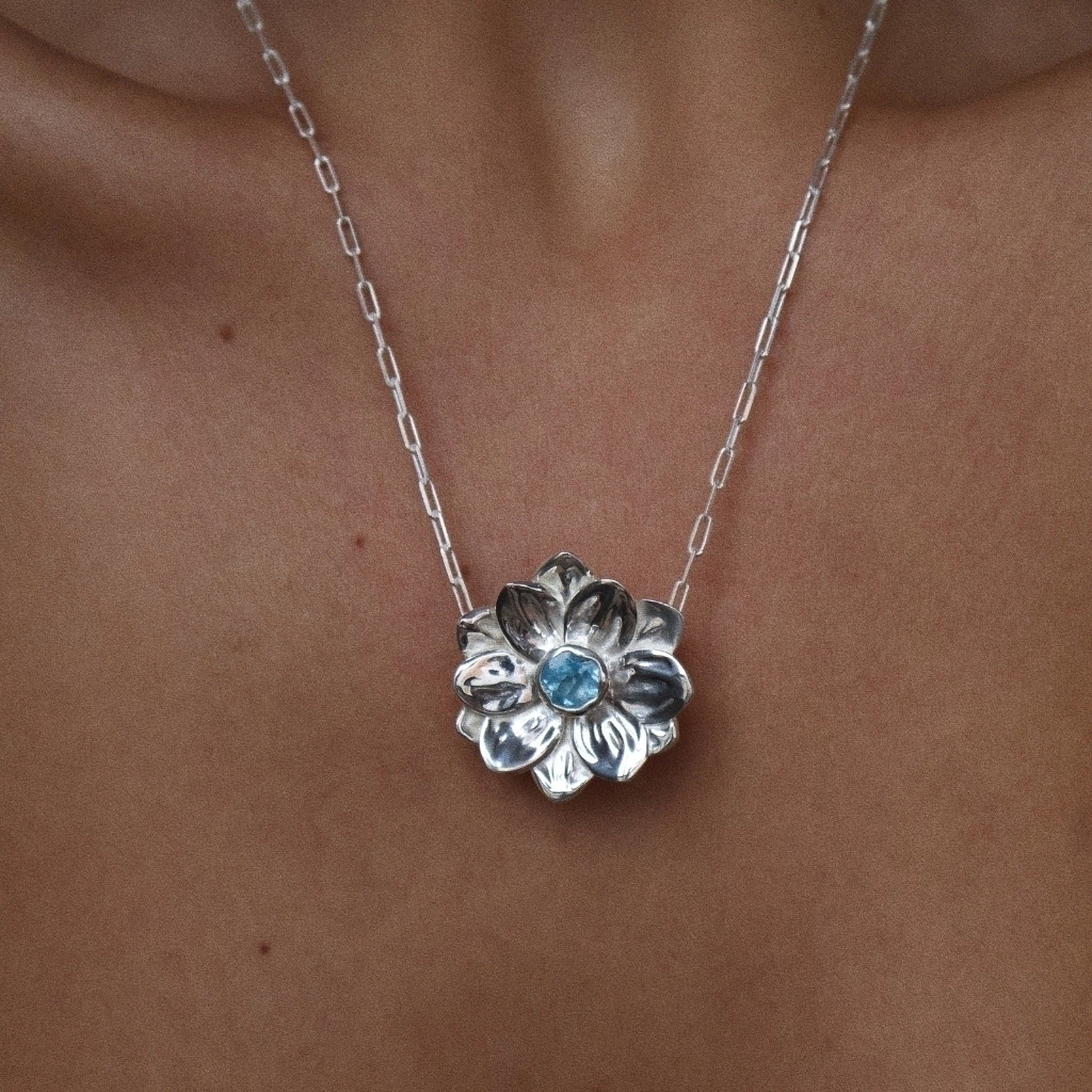 Colar Dama traduz o charme e mistério da flor dama-da-noite, assumindo um brilho ainda mais especial ao representar seu poder e simbologia. O miolo da flor, composto por uma deslumbrante pedra preciosa, torna-se o coração pulsante da peça. Essa pedra central nos remete a preciosidade da dama-da-noite, que floresce apenas à noite, desafiando a escuridão com seu brilho único. Um convite a carregar consigo uma lembrança constante do poder e da magia que permeiam os momentos mais efêmeros da vida, celebrando a beleza fugaz em todas as suas formas.