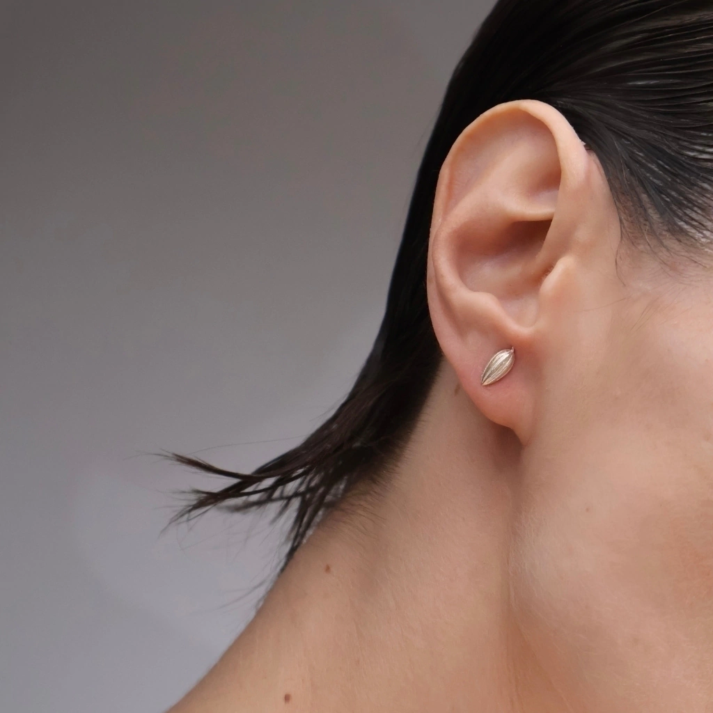 O brinco Mini Cacau representa as sensações de um verão baiano. Formas e texturas homenageiam o cacau, fruto sagrado e símbolo de conexão que integra nossa mente-corpo.